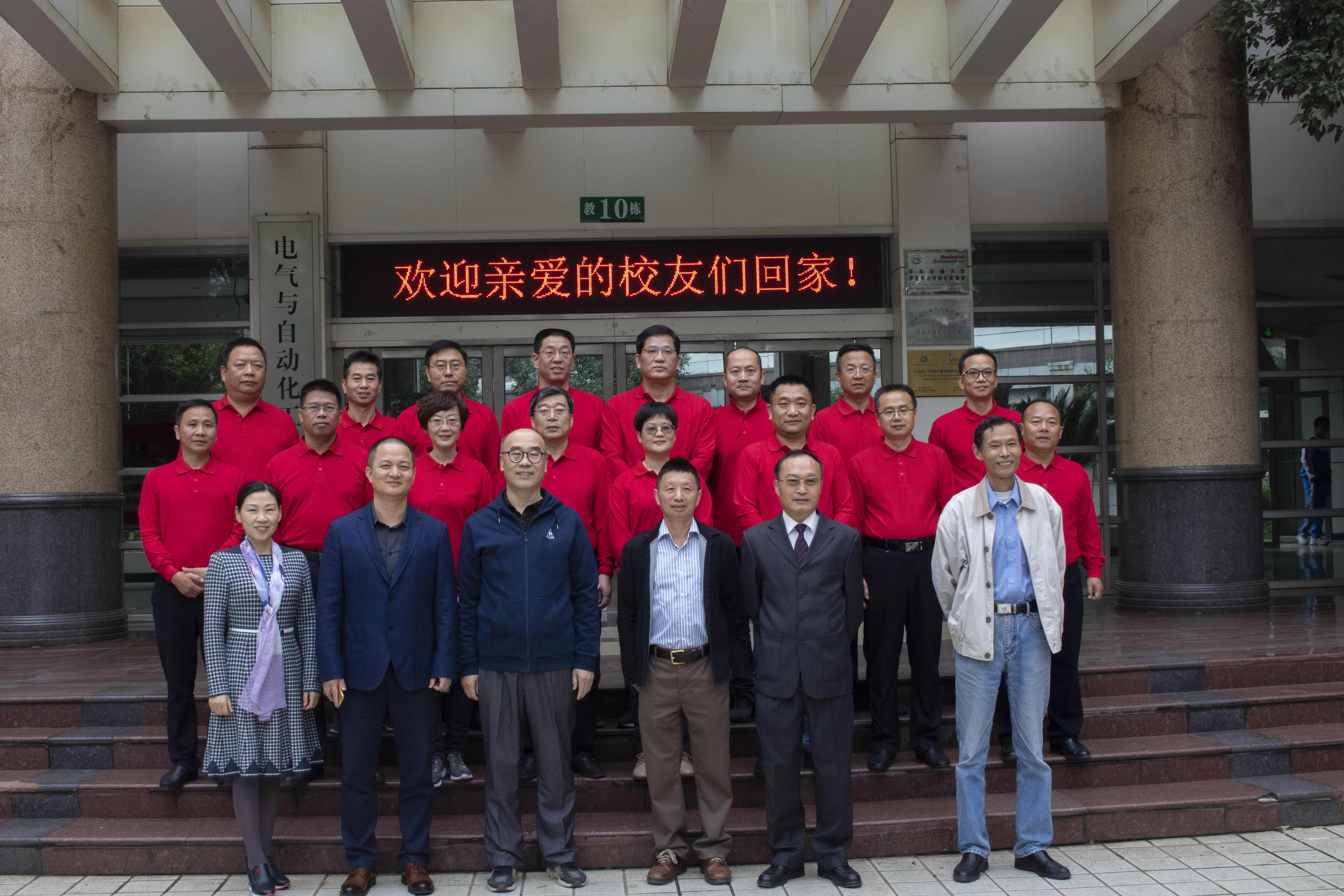 座谈会前,员工们与各位领导于电气楼前合影留念。