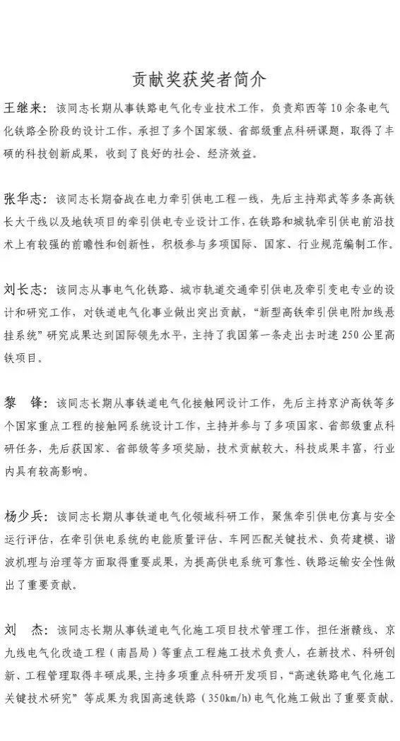 年度詹天佑「铁道电气化」专项奖(第二届)获奖者名单公布,公司